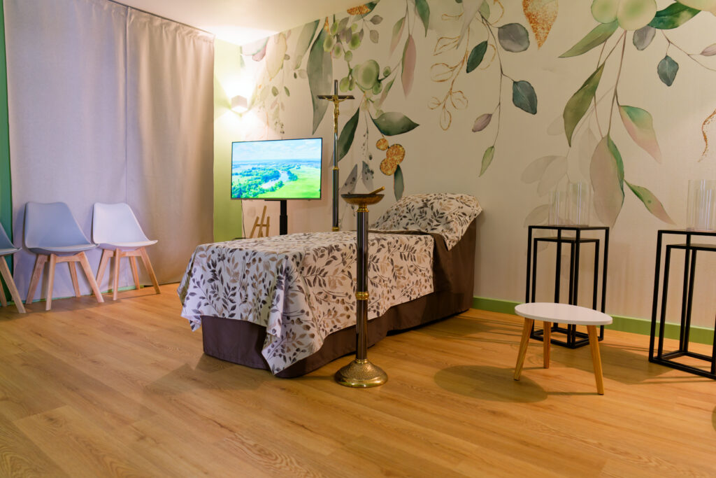 La chambre funéraire du Linon est un endroit propre, apaisant et récemment refait sur le thème de la nature, ce qui crée une atmosphère douce et sereine. L’espace est bien pensé pour le recueillement, avec des boissons mises à disposition pour les familles. Un grand merci pour ce lieu empreint de dignité et de bienveillance.